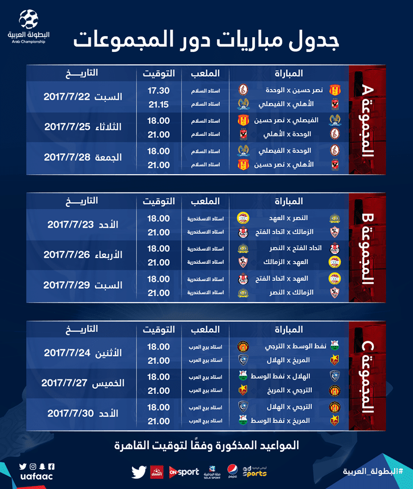 جدول مباريات البطولة العربية للاندية 2017 دوري ابطال العرب 2017 منتديات درر العراق