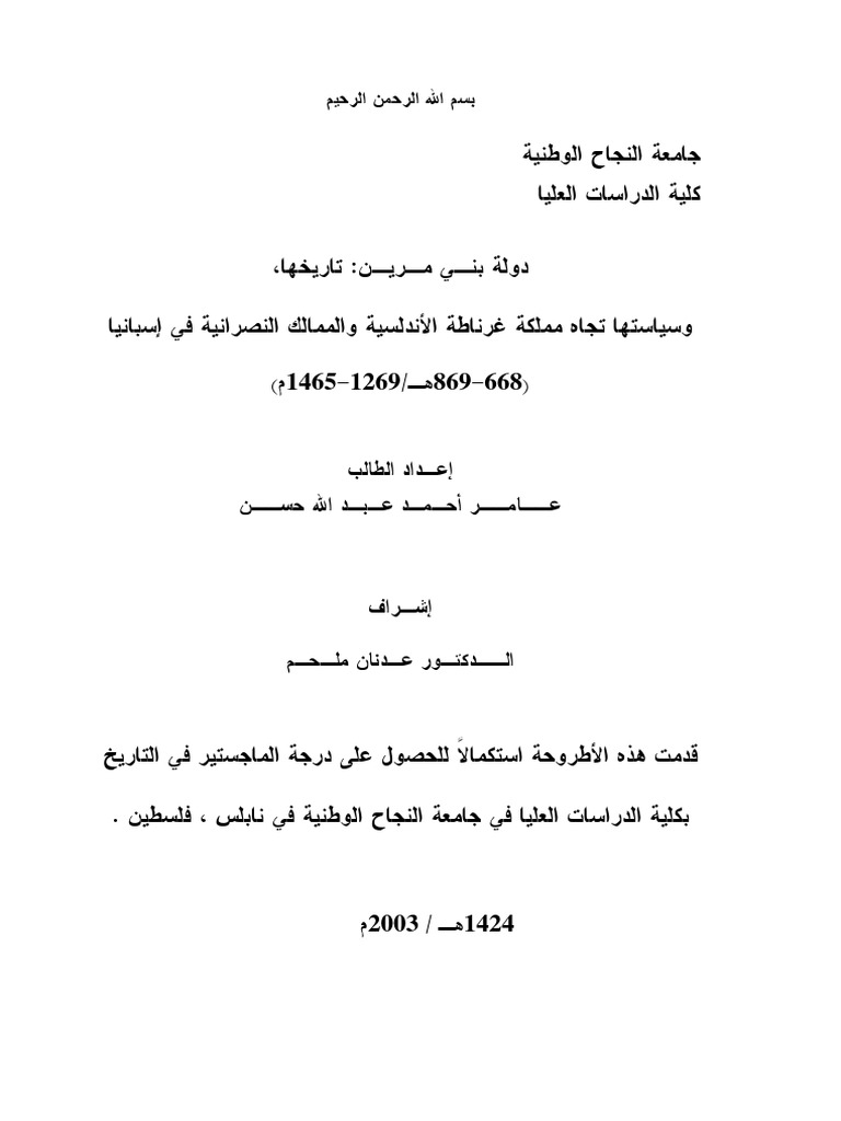 Bani Marin State History And Its Policy Toward Andalusian Granada Kingdom And Christian Kingdoms In Spain 668 869 H 1269 1465 Ad