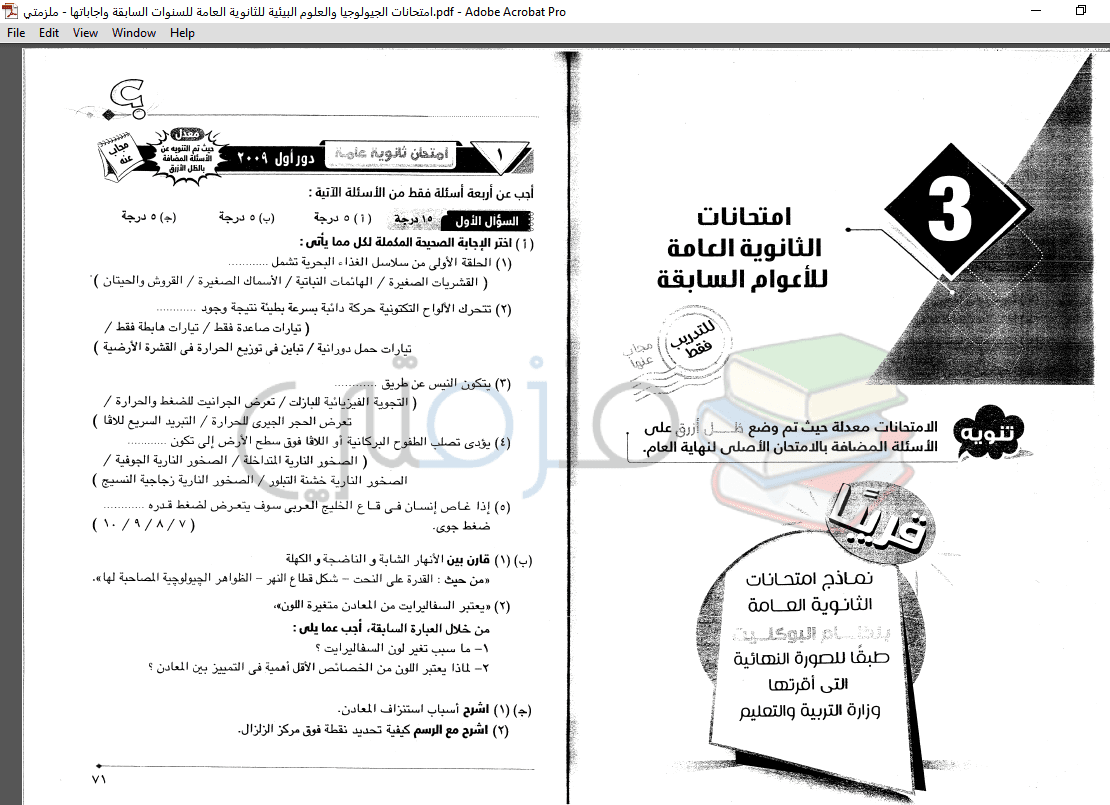 امتحانات السنوات السابقة بإجاباتها النموذجية جيولوجيا الثانوية العامة 2020 صباح مصر