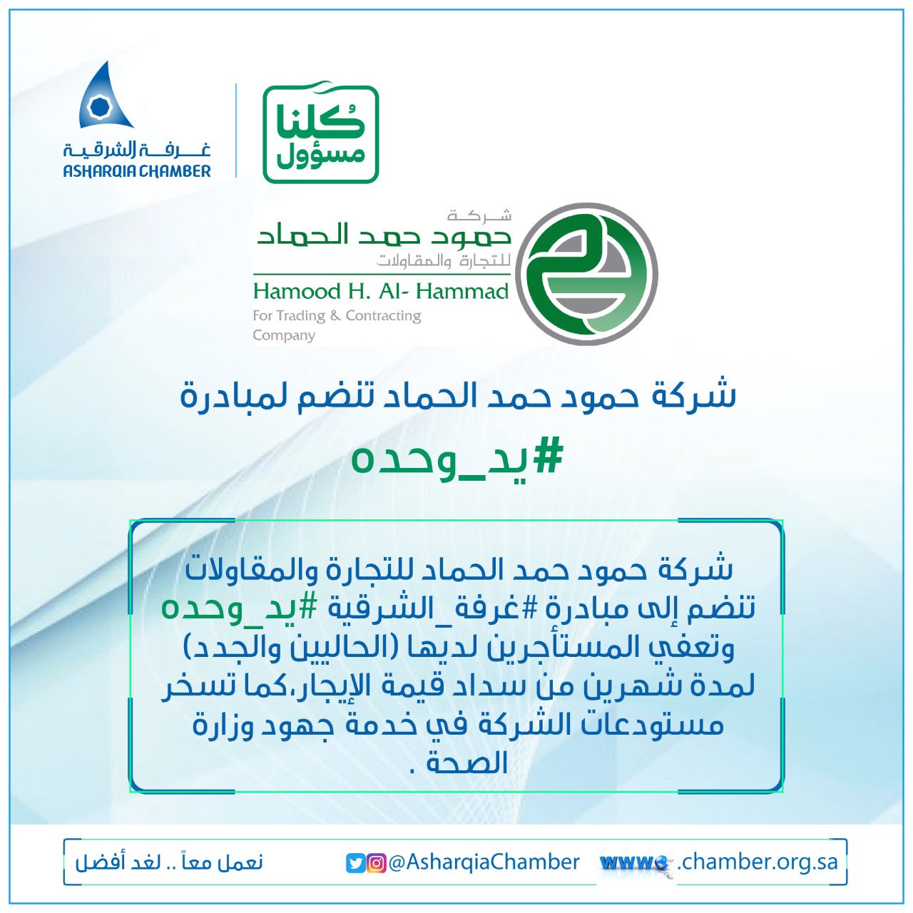 غ ر ف ة الشرقية On Twitter شركة حمود حمد الحماد للتجارة والمقاولات تنضم إلى مبادرة غرفة الشرقية يد وحده وتعفي المستأجرين لديها الحاليين والجدد لمدة شهرين من سداد قيمة الإيجار كما تسخر مستودعات الشركة في