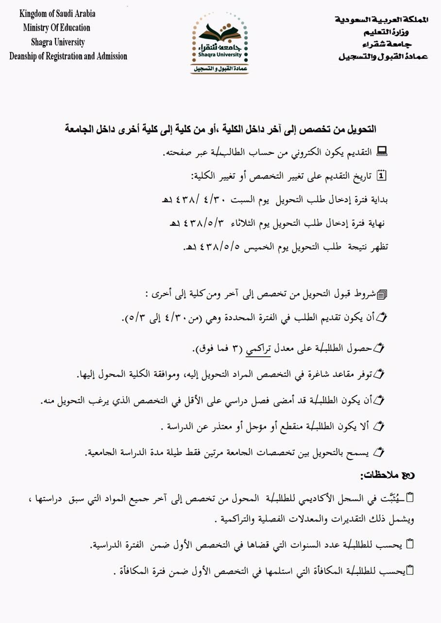 طلب تغيير التخصص جامعة شقراء