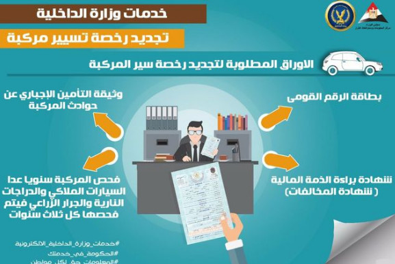 تعرف على الرسوم الجديدة لتجديد رخصة السيارة 3 سنوات الملاكي والأجرة جديدة ومستعملة