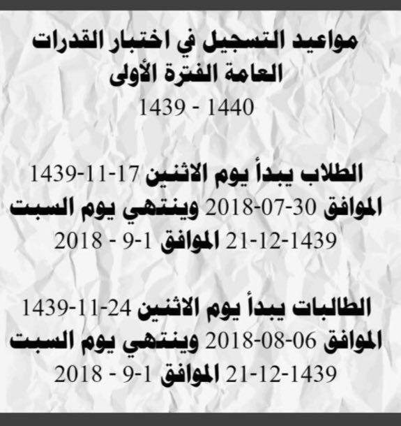 مواعيد التسجيل في اختبار القدرات الفترة الاولى 1439 هـ 2018 م تطور التعليمي