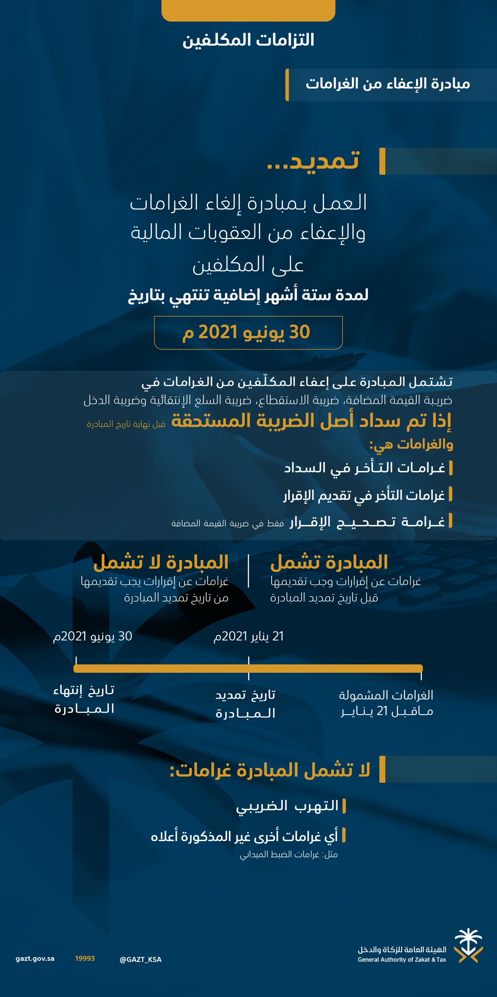 الهيئة العامة للزكاة والدخل On Twitter الزكاة والدخل تعلن تمديد مبادرة إلغاء الغرامات والإعفاء من العقوبات المالية للمكلفين حتى تاريخ 30 سبتمبر 2020م