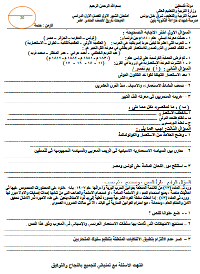امتحان تاريخ توجيهي أدبي و شرعي 2016 المكتبة الفلسطينية الشاملة