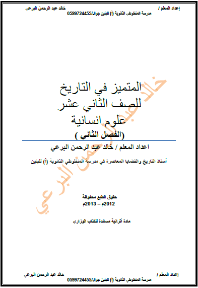 مواد اثرائية في التاريخ للصف الثاني عشر شرعي أدبي المدرب الفلسطيني
