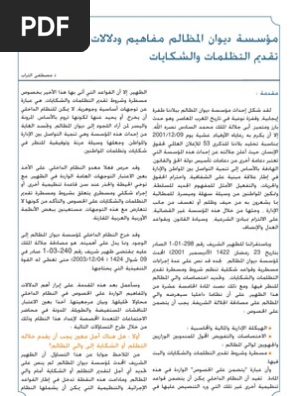 مؤسسة ديوان المظالم مفاهيم ودلالات لبعض شروط تقديم التظلمات والشكايات