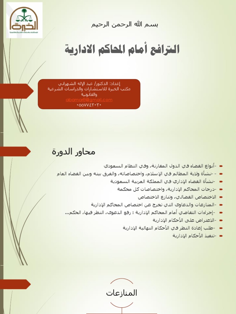 د ماجد بن سليمان الخليفة בטוויטר ورغم ذلك وخشية من تباين وجهات النظر حول مضمون الفقرة الأولى في البند أولا من المرسوم الملكي الصادر بالمصادقة على نظام المرافعات أمام ديوان المظالم فمن الأحوط