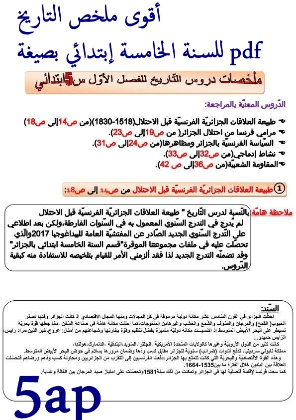 أقوى ملخص التاريخ للسنة الخامسة إبتدائي بصيغة Pdf الموقع التعليمي Ademweb Com
