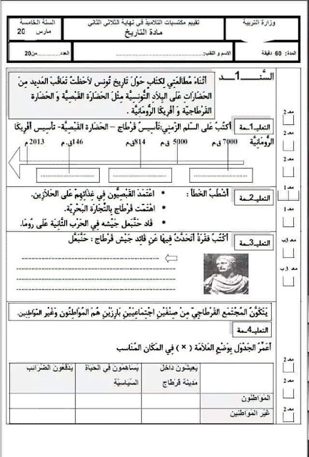 امتحان تربية مدنية و تاريخ السنة الخامسة الثلاثي الاول امتحانات تونس