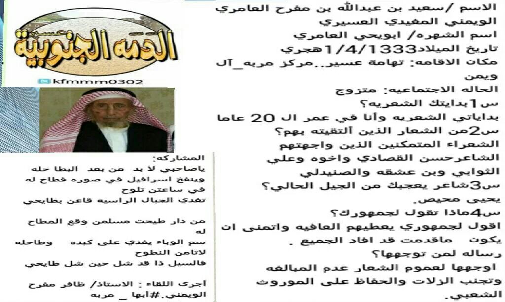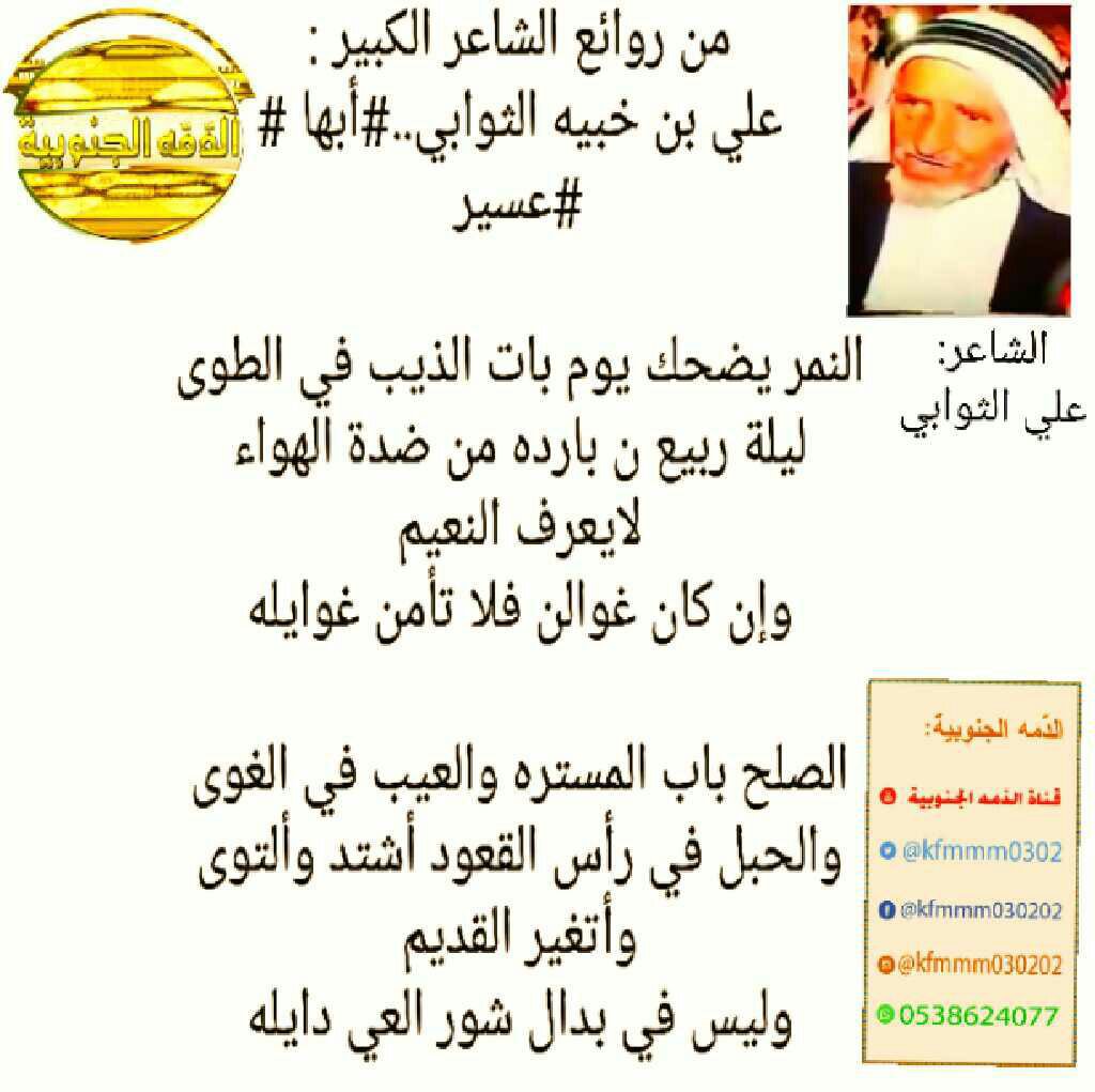 الد م ة الجنوبية On Twitter خبر عاجل وفاة الشاعر الكبير علي بن خبية الثوابي العلكمي العسيري في أبها عسير نسأل الله ان يرحمه ويغفر له إنا لله وإنا إليه راجعون Https T Co Yjetsbknff