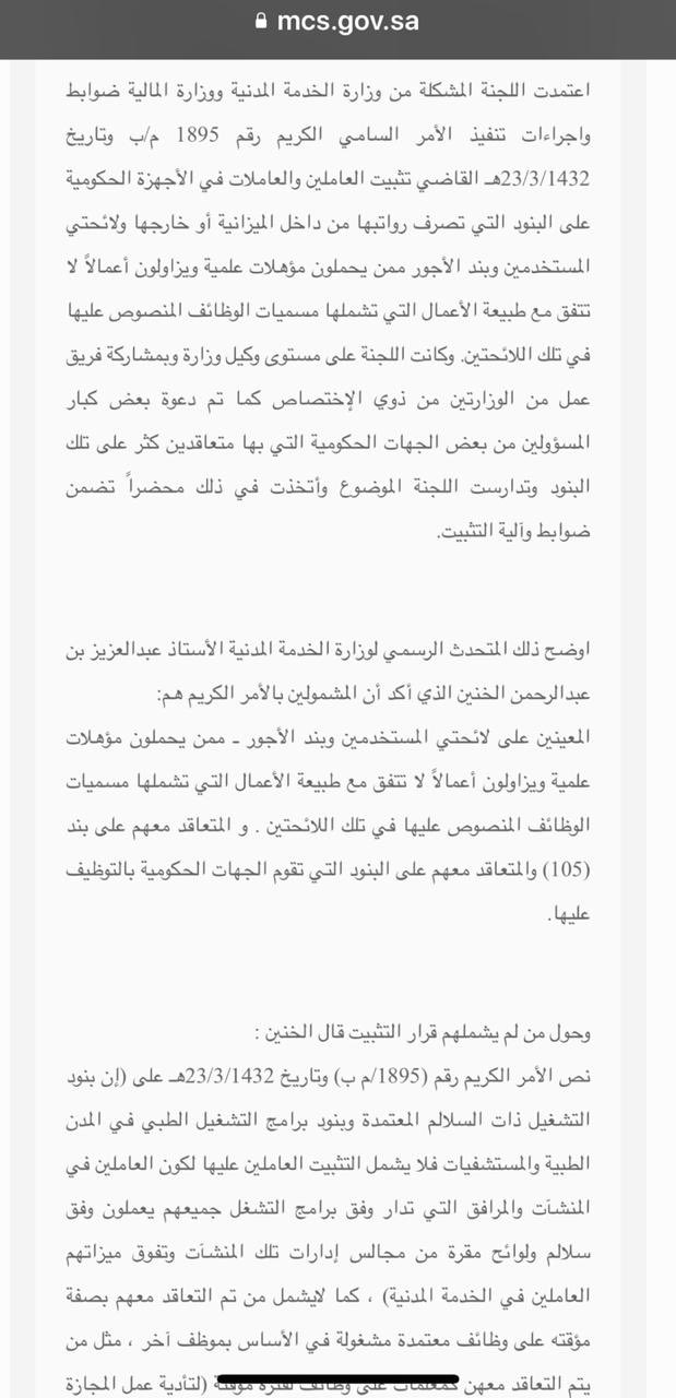 الأمر السامي قرار تثبيت الموظفين لعام 1432