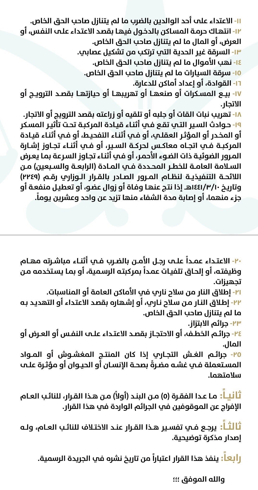 السعودية بالأرقام A Twitter صدور قرار معالي النائب العام الشيخ سعود بن عبدالله المعجب النيابة العامة رقم ١ وتاريخ ١٤٣٣ ١ ١ المحدد للجرائم الكبيرة الموجبة للتوقيف إستناد للمادة ١١٢ من