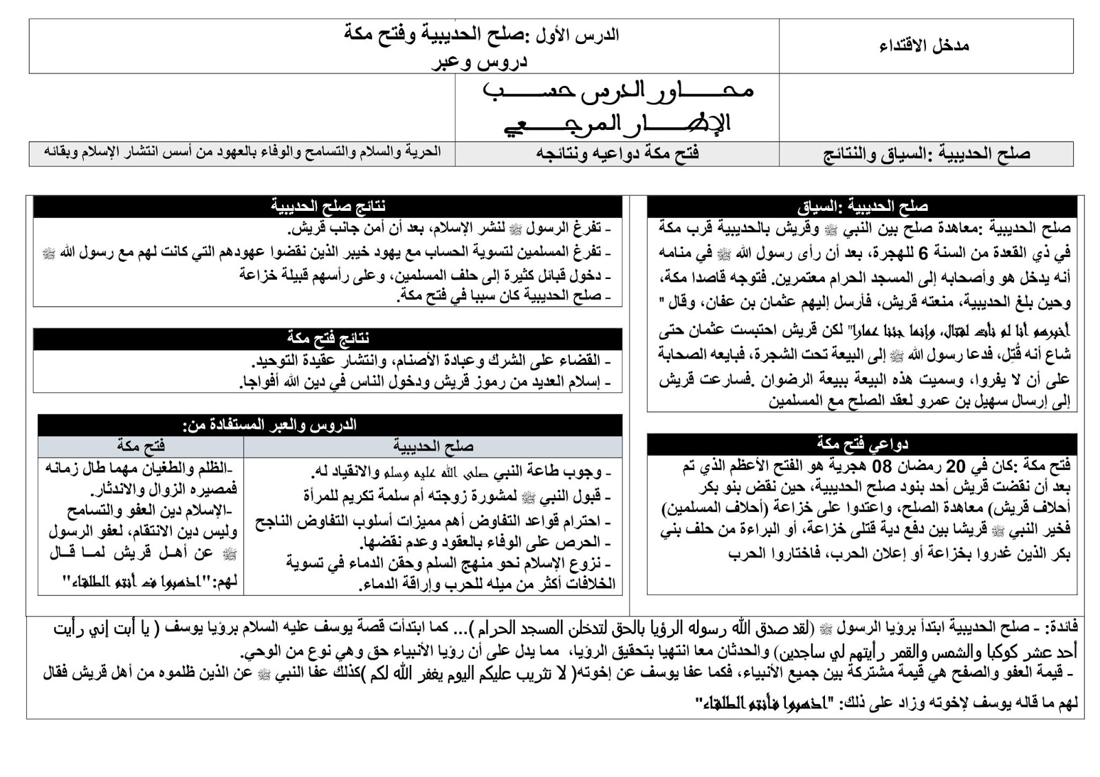 درس صلح الحديبية الثالثة متوسط بستان الجزائر