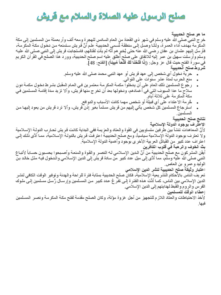 مدخل الإقتداء صلح الحديبية العبر والمواعظ التربية الاسلامية للثانوي التأهيلي