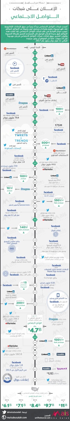نبذة عن تاريخ الإعلان على شبكات التواصل الاجتماعي انفوجرافيك