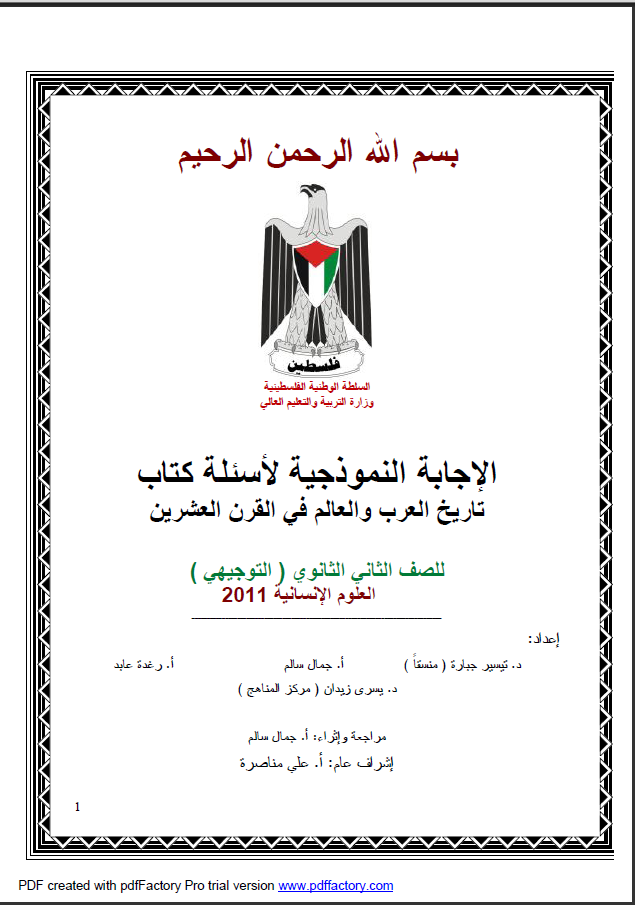 كتاب التاريخ الوزاري للصف الثاني عشر أدبي المكتبة الفلسطينية الشاملة