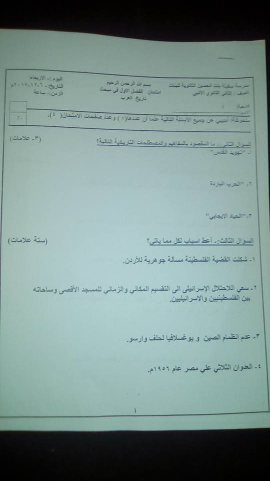 امتحان تاريخ العرب طلاب 2001 ما رأيكم جو اكاديمي Jo Academy Facebook