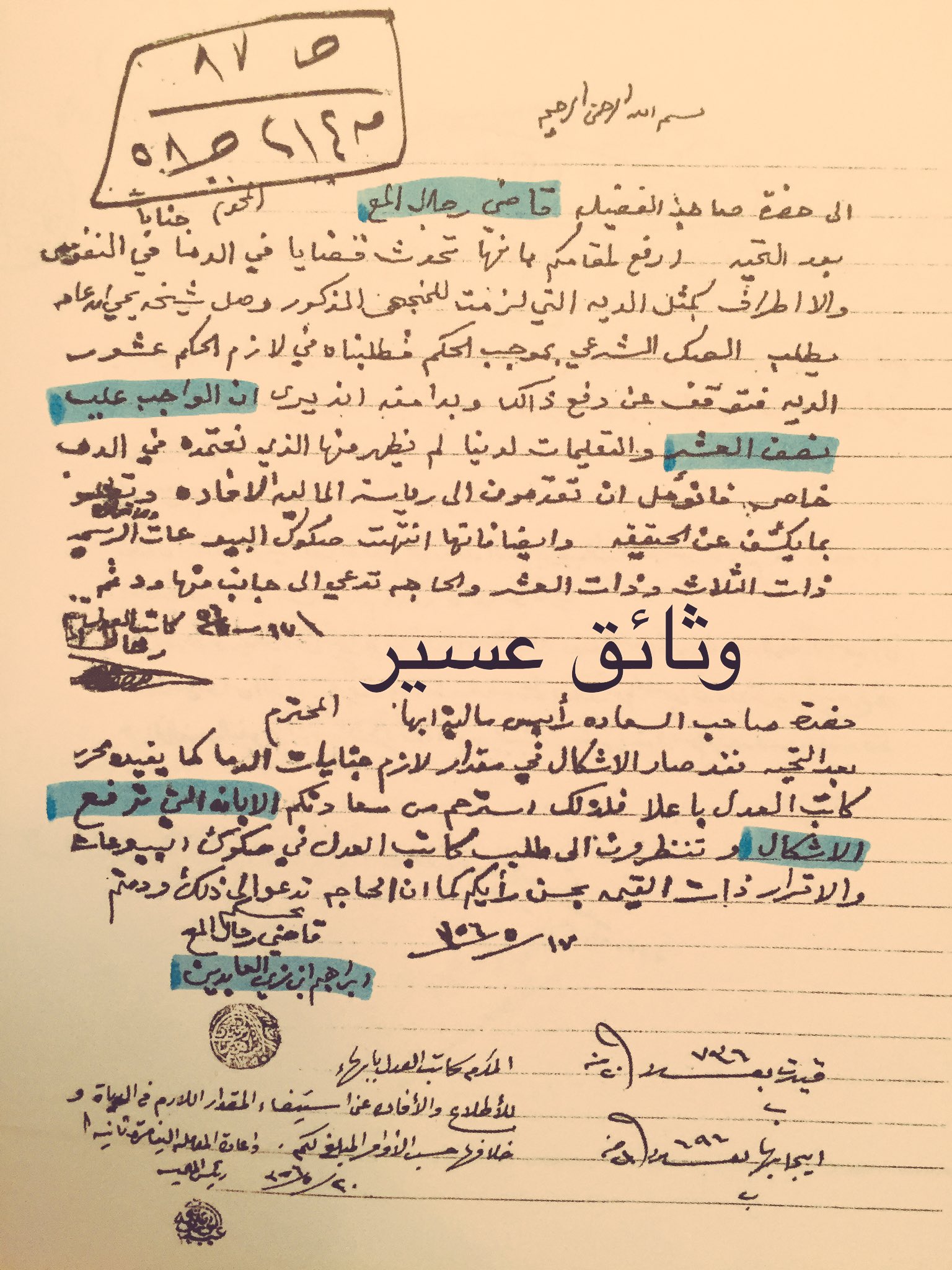 وثائق عسير Pa Twitter من كاتب عدل رجال المع الى القاضي ابراهيم بن زين العابدين الحفظي يستفتيه في الواجب دفع في الجنايات والديات