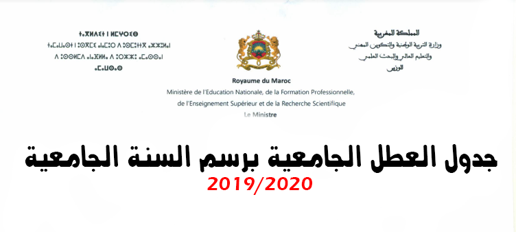 جدول العطل الجامعية برسم السنة الجامعية 2019 2020