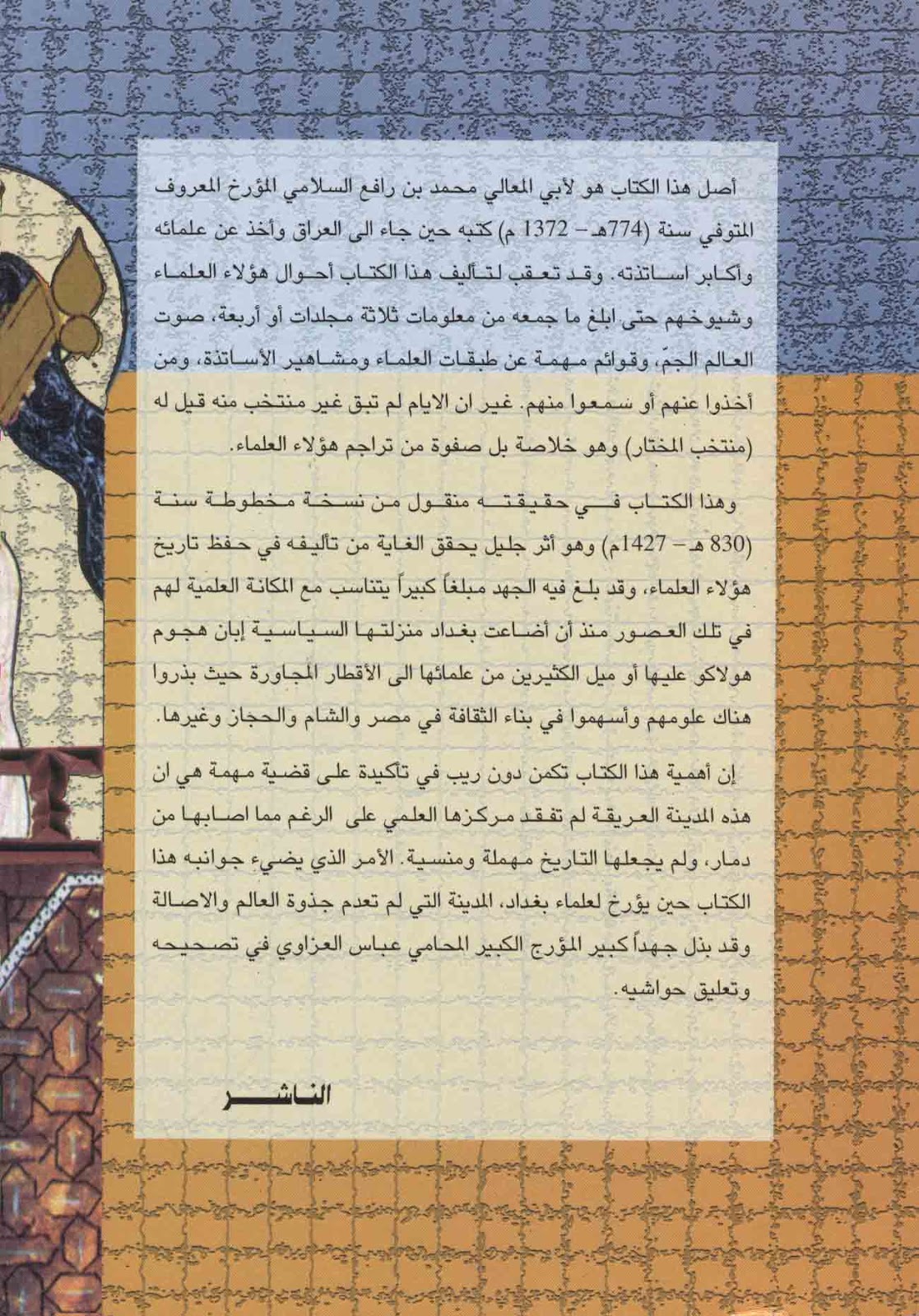 تحميل كتاب تاريخ علماء بغداد المسمى منتخب المختار Pdf ل ابى المعالى محمد بن رافع السلامى مقهى الكتب