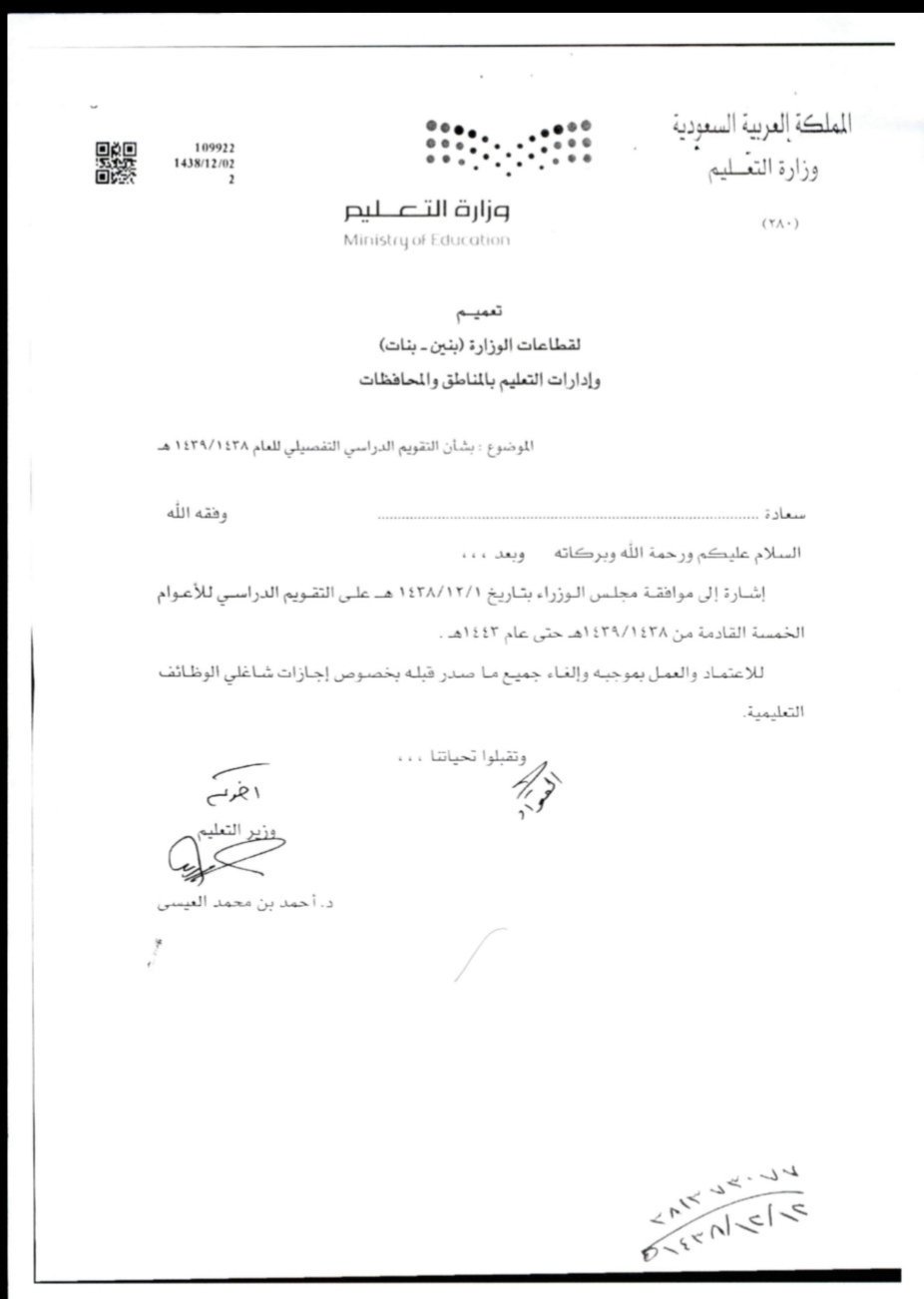 عاجل تعميم التقويم الدراسي للعام 1438 1439 هـ موضحا به إجازات شاغلي الوظائف التعليمية و الاداريين مدونة علي المباركي